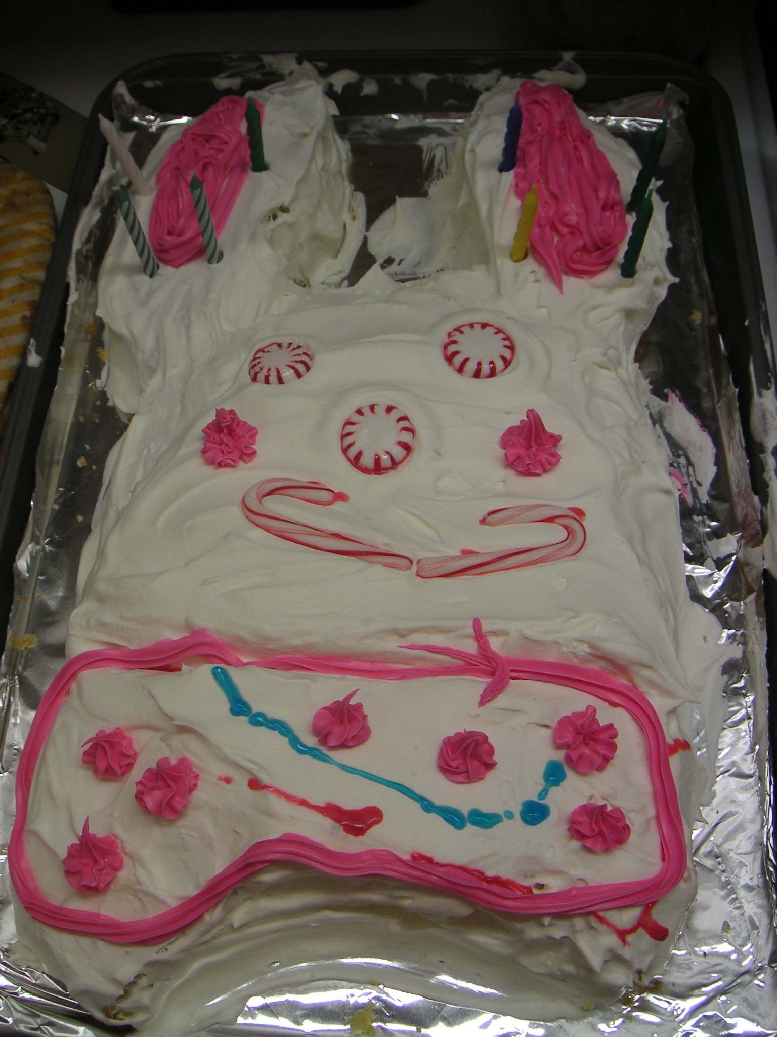 10:20 pm – (Yes, four minutes for the kids to pour Jell-O into molds – fun!) Leave cakes on stovetop to cool while I go to bed. Mention to my mom that it’s probably too warm for ants we were battling at that time to bother. I’m positive she makes a mental note not to have any bunny cake.